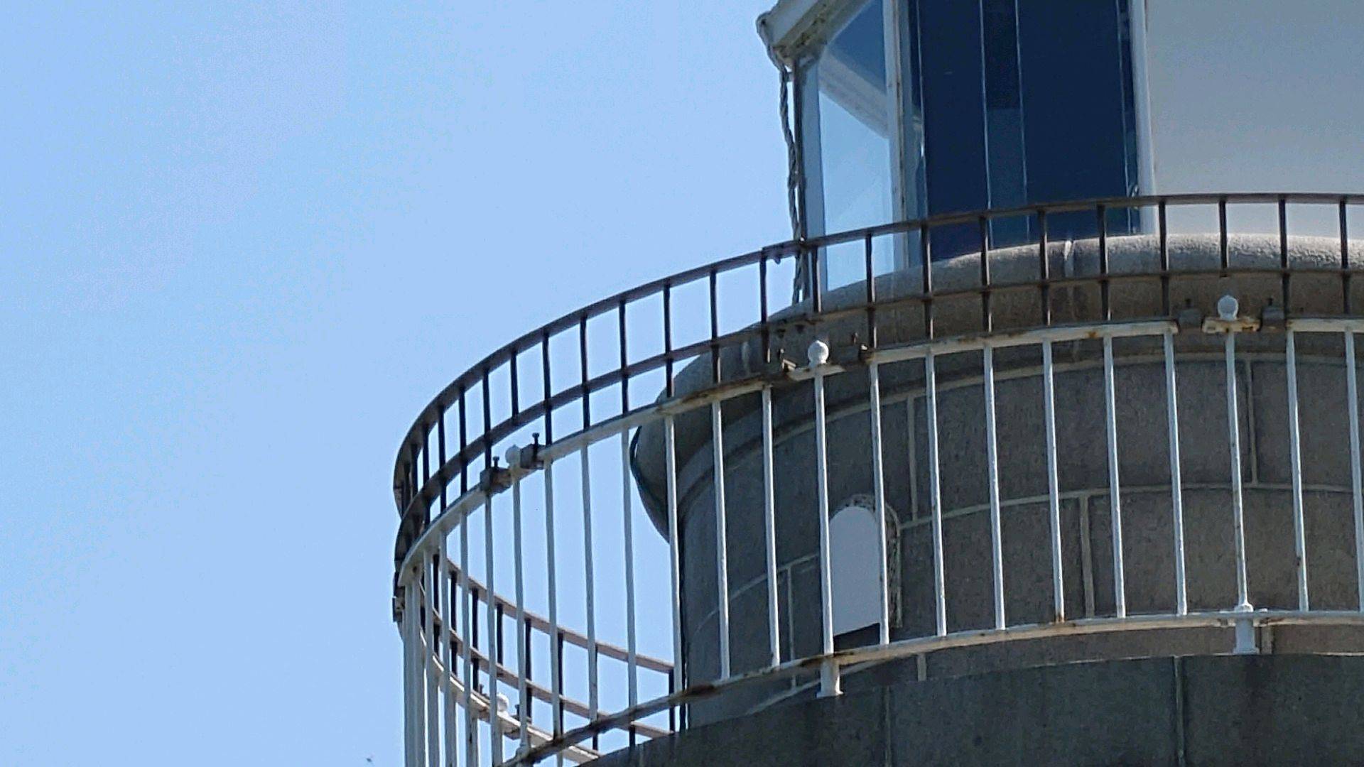 到達男木島,下船後,前往今天的主要目標—男木島灯台。路途上,看到紬ヴェンダース的痛車,遇到一隻逃出雞舍的雞,以及經過「細川和俊君の足跡」碑,行走約半小時後,抵達燈塔。